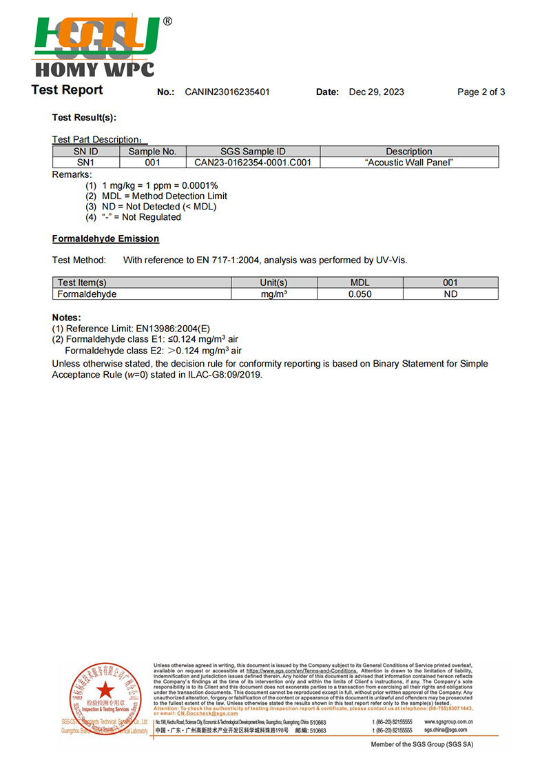 First,CE Certification Wood Slate Acoustic Wall Panel is a kind of decorative wall covering. It applies to standard En15102:2007+A1:2011.Second,EU N717-1: Class E0, Formaldehyde Emission Test Report is quite important for customers’ health.