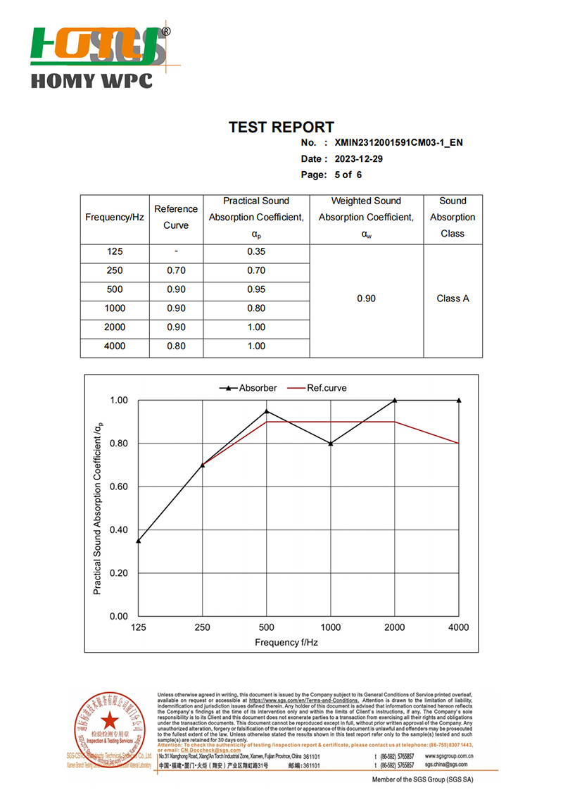 Third, EN ISO 354:2003:Class A, Sound Absorption Test Report means quite and peace in customers’ home or officer.